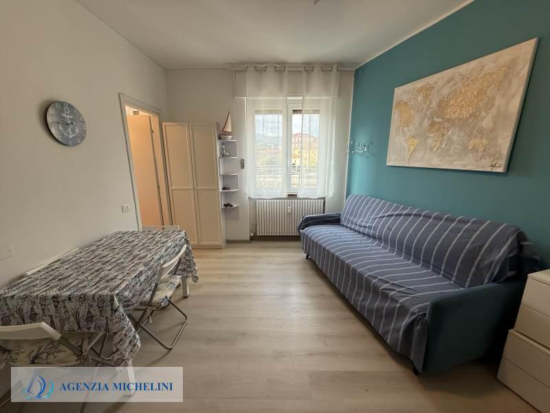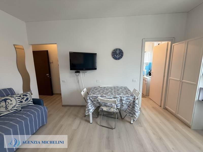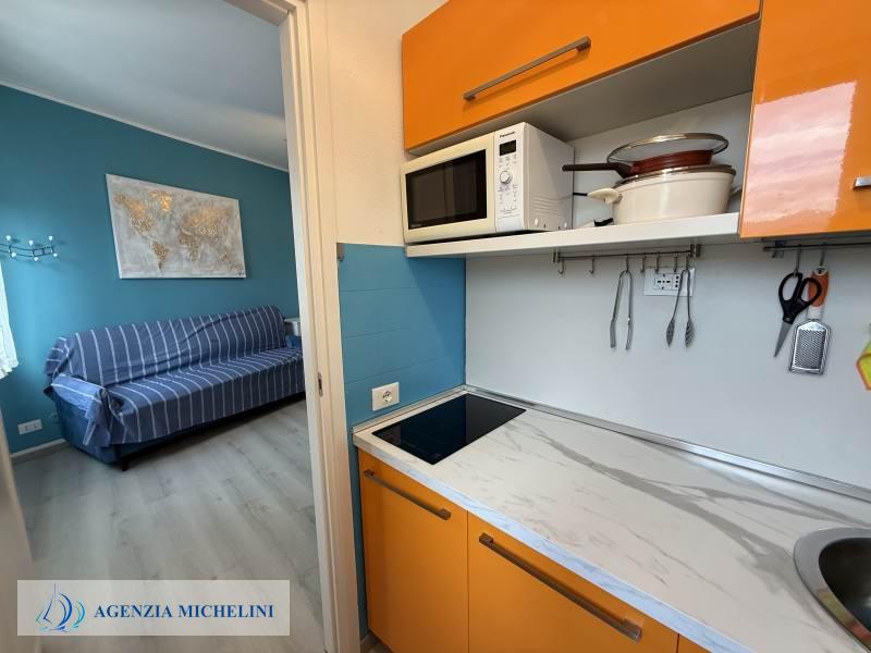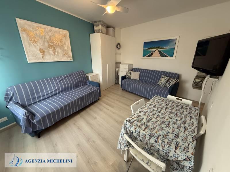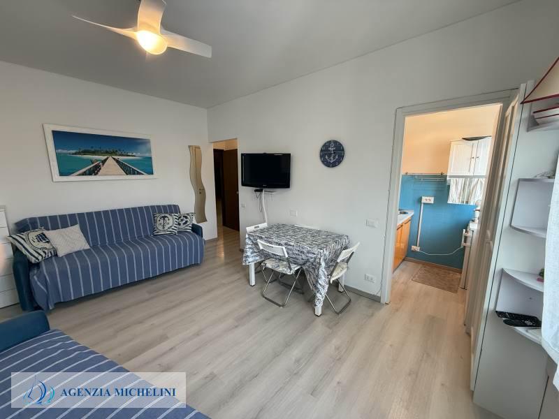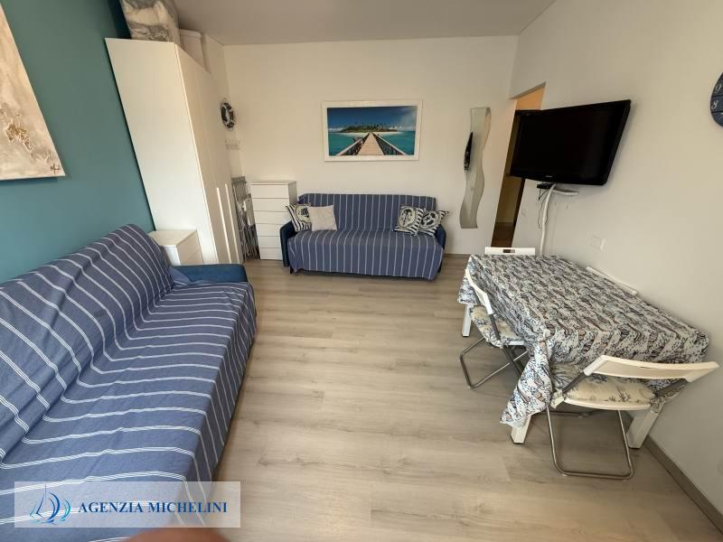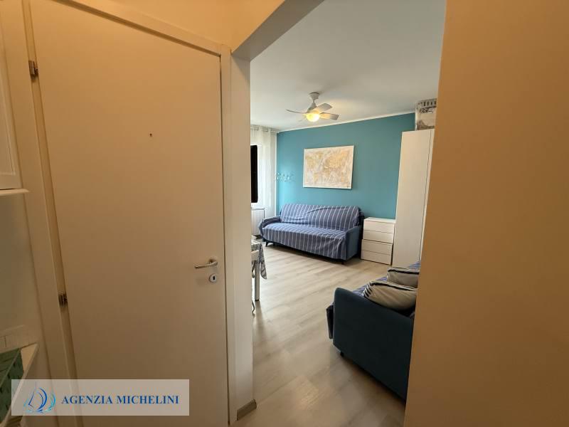 On the second floor of a building with a lift, part of an elegant residential complex located close to the beaches, a renovated studio flat in excellent condition with a direct view of the cycle path. The residence has two exclusive swimming pools facing the sea and benefits from a concierge service and night security. The carefully maintained green areas add elegance to the pleasant surroundings. The exclusive location between beaches and cycle path makes this property an excellent solution both as a holiday home and as an investment in one of the most sought-after areas in the region.